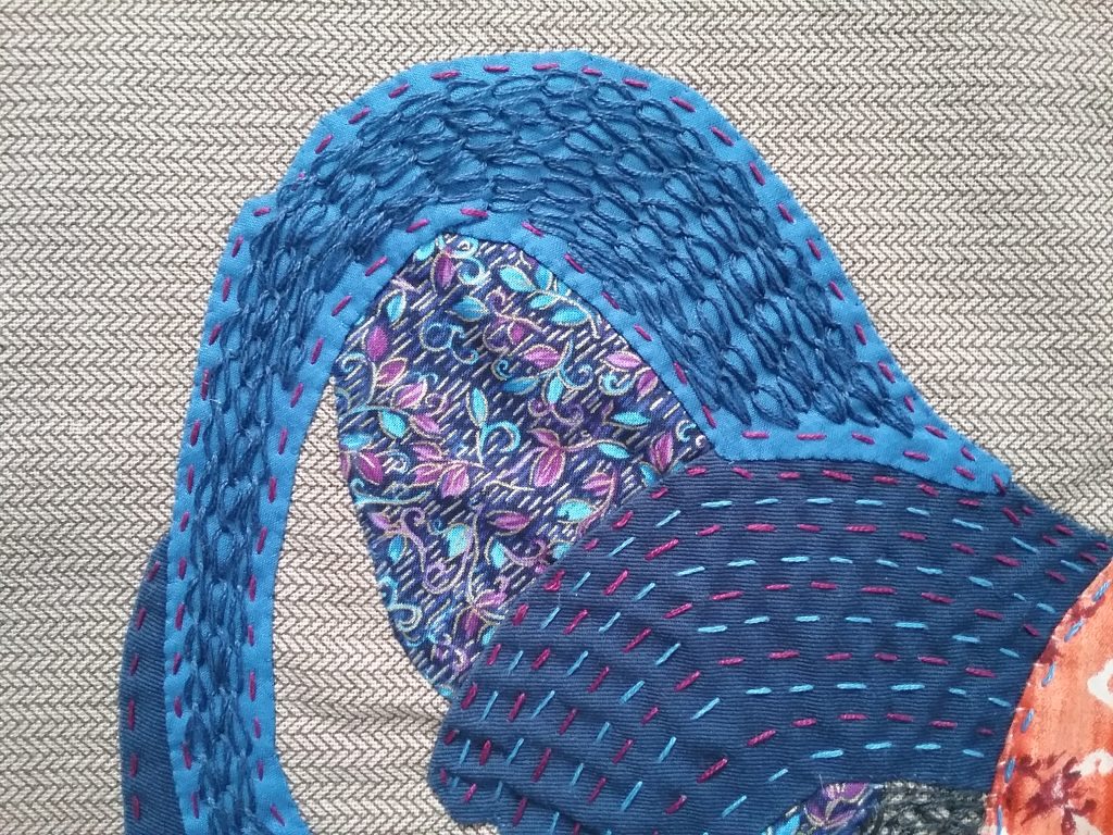 One of my goals for 2019 was to create “a crazy quilt type piece,” which means to me using scraps of a variety of fabrics coupled with embroidery to make something interesting.