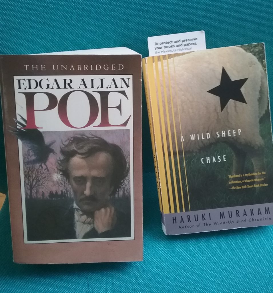 - “A Wild Sheep Chase” by Haruki Murakami – Okay, I just started this book last night. I found this and another book by Murakami in a thrift shop and they looked intriguing, so I purchased them. So far, I am not disappointed by “A Wild Sheep Chase.” I’m enjoying Murakami’s writing style and the story he is building.