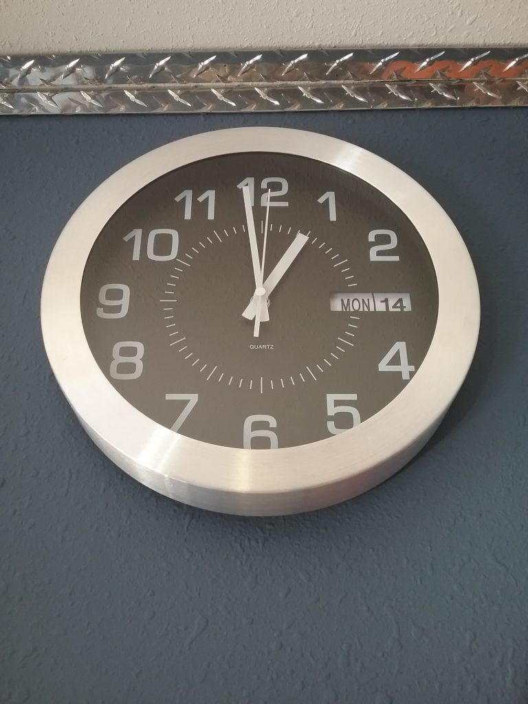 Clock at First Avenue Auto, Little Falls, MN, 2018.