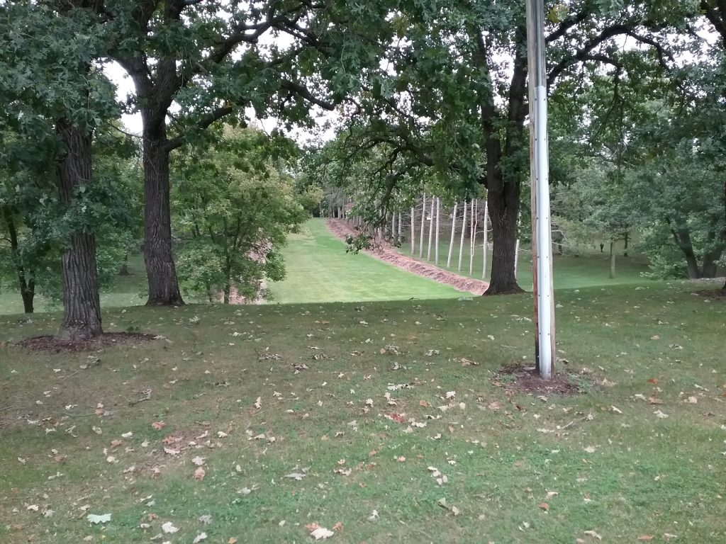 Sue also pointed out the large, sweeping swath of open ground that is evident through the stand of burr oaks. This used to be a 1970s-era toboggan hill in the park. The burr oaks themselves are special to the park because there are so many of them. Stands of pine trees were also planted within the park over time.